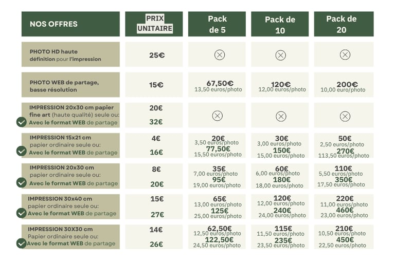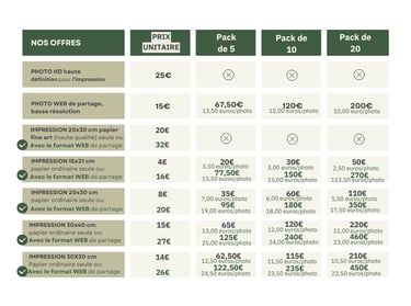 -2 photos web et l'une des 1 photos imprimé en 20x30 cm OFFERTE en papier de qualité fin art