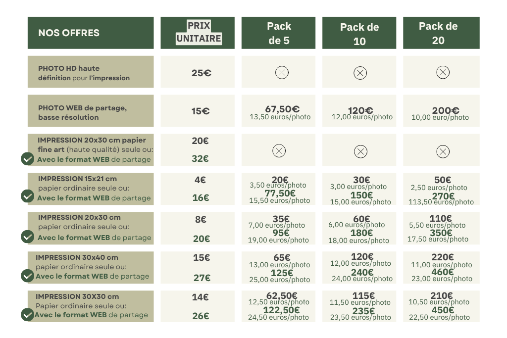 • Des besoins spécifiques (portraits, portées, ambiance, pack web, etc.)