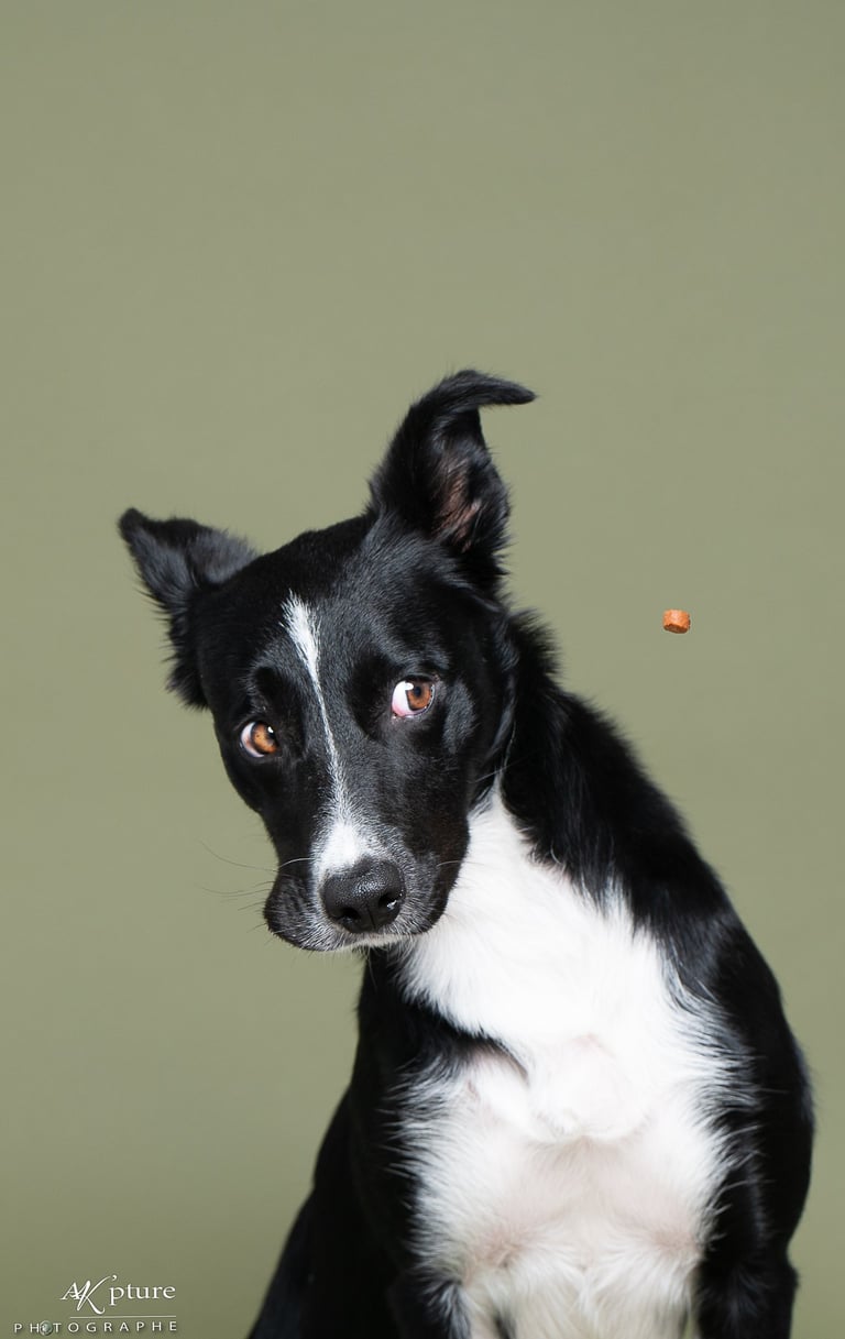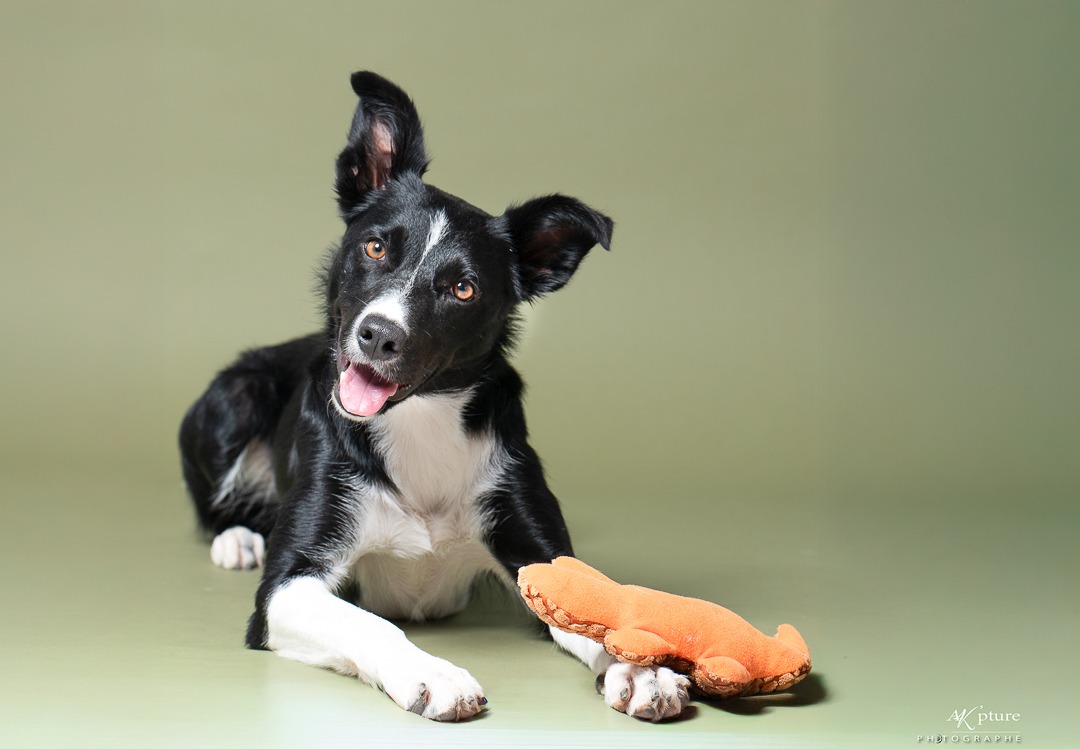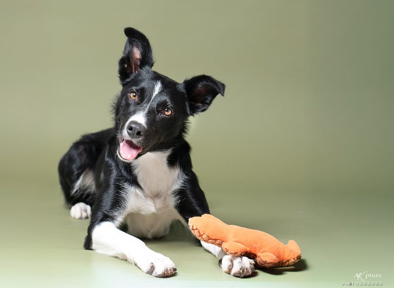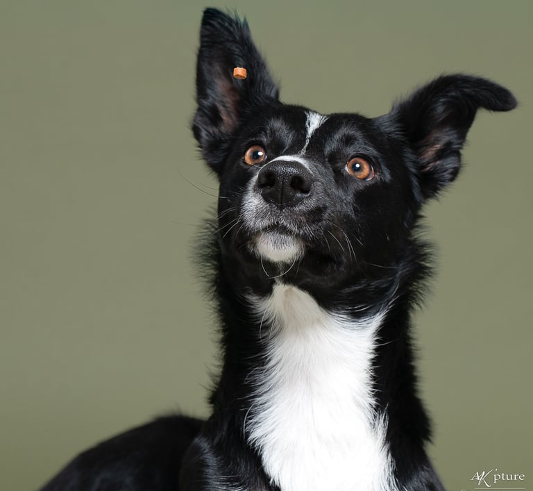 Je laisse leur personnalité s’exprimer, sur des fonds colorés ou foncés qui mettent en valeur leur regard, leur pelage. Ici, pas de poses figées ni de stress : on joue, on rit, on lance des croquettes, on fais des bulles, on jette une balle...et on mange des friandises!