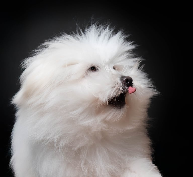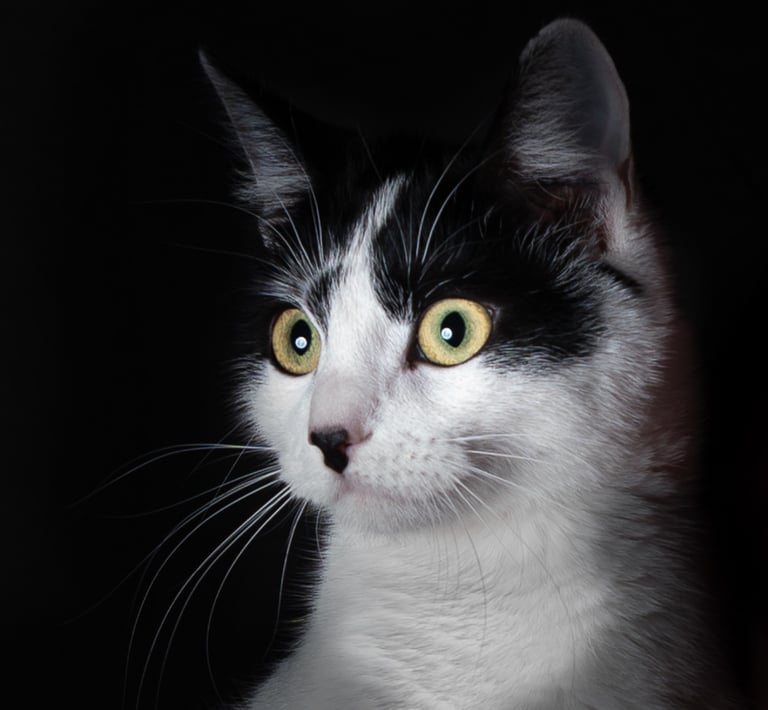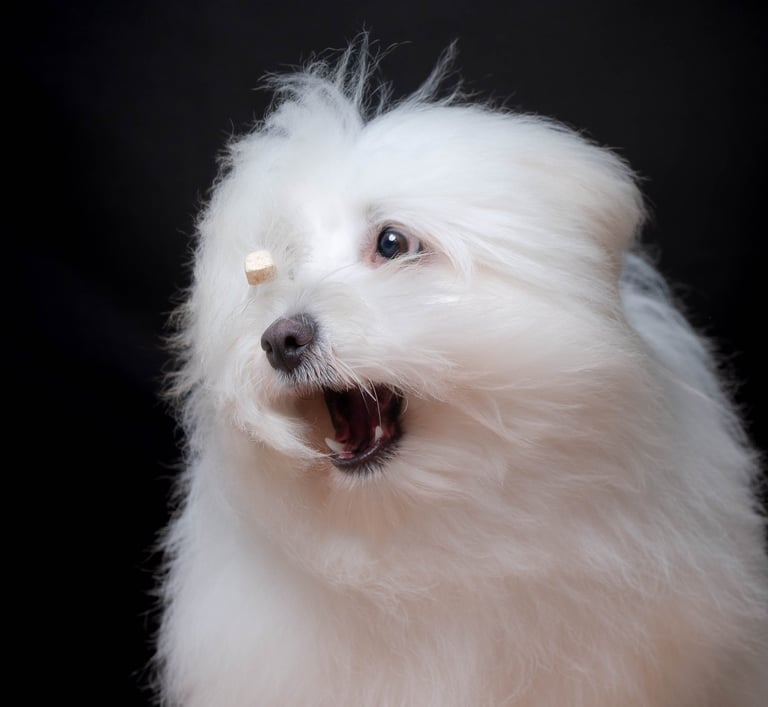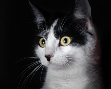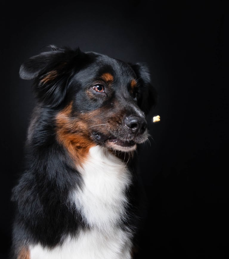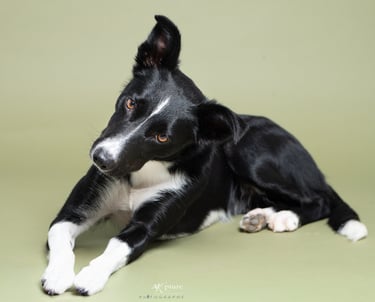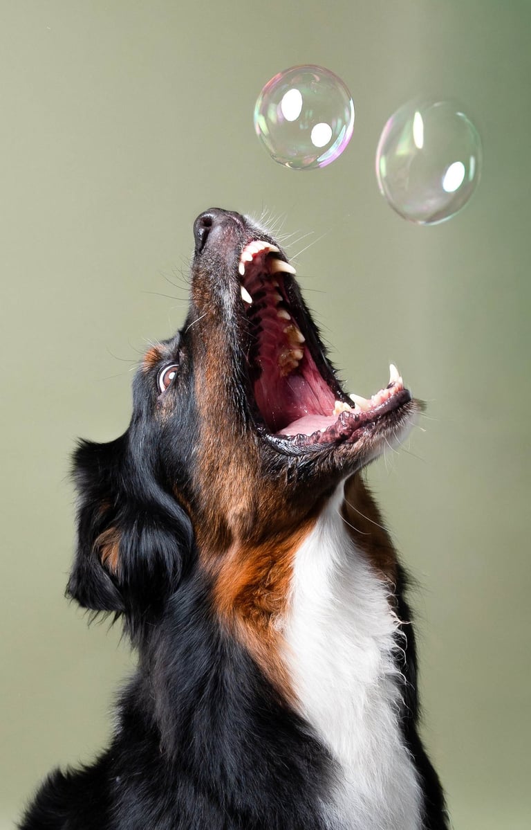 Je laisse leur personnalité s’exprimer, sur des fonds colorés ou foncés qui mettent en valeur leur regard, leur pelage. Ici, pas de poses figées ni de stress : on joue, on rit, on lance des croquettes, on fais des bulles, on jette une balle...et on mange des friandises!