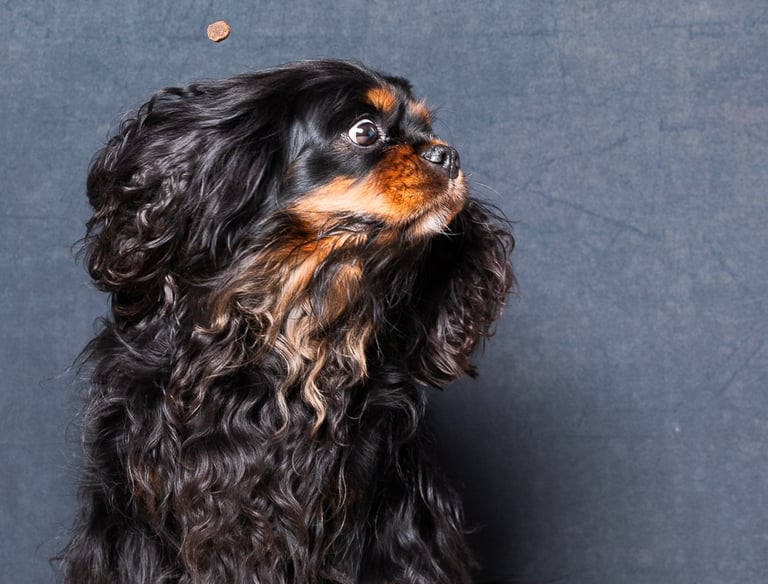 • Lancé de croquettes pour capturer des sauts, des expressions de douce gueule.