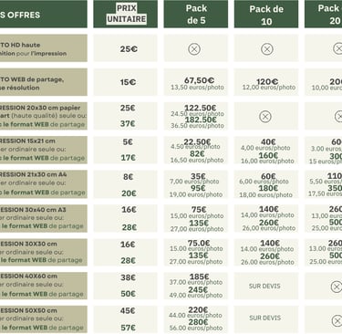 Nous proposons trois formules adaptées à vos besoins et budgets, à partir de 75 € (hors mini séances).