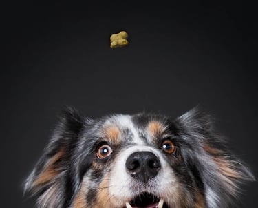 • Lancé de croquettes pour capturer des sauts, des expressions de douce gueule.