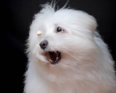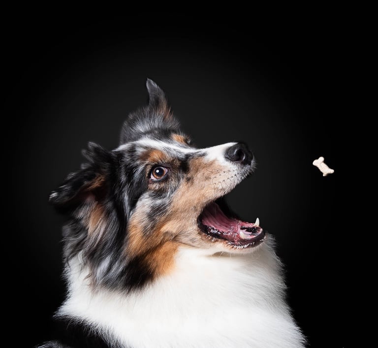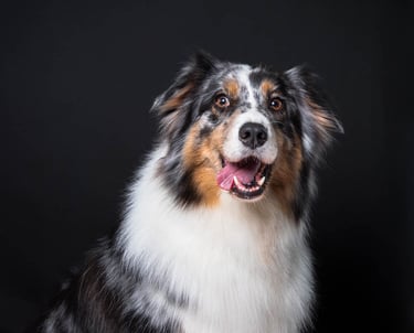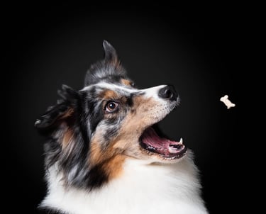 Je laisse leur personnalité s’exprimer, sur des fonds colorés ou foncés qui mettent en valeur leur regard, leur pelage. Ici, pas de poses figées ni de stress : on joue, on rit, on lance des croquettes, on fais des bulles, on jette une balle...et on mange des friandises!