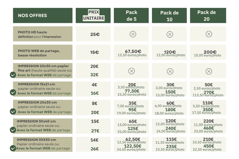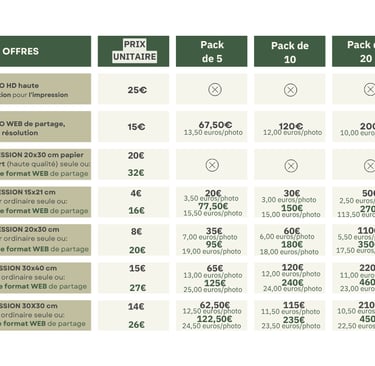 Nous proposons trois formules adaptées à vos besoins et budgets, à partir de 75 € (hors mini séances).